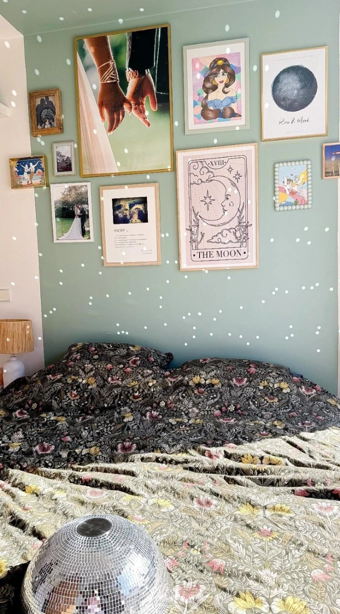 J’ai créé une tête de lit en peinture afin de structurer l’espace, définir la zone nuit et apporter de la personnalité sans ajouter de meubles supplémentaires.