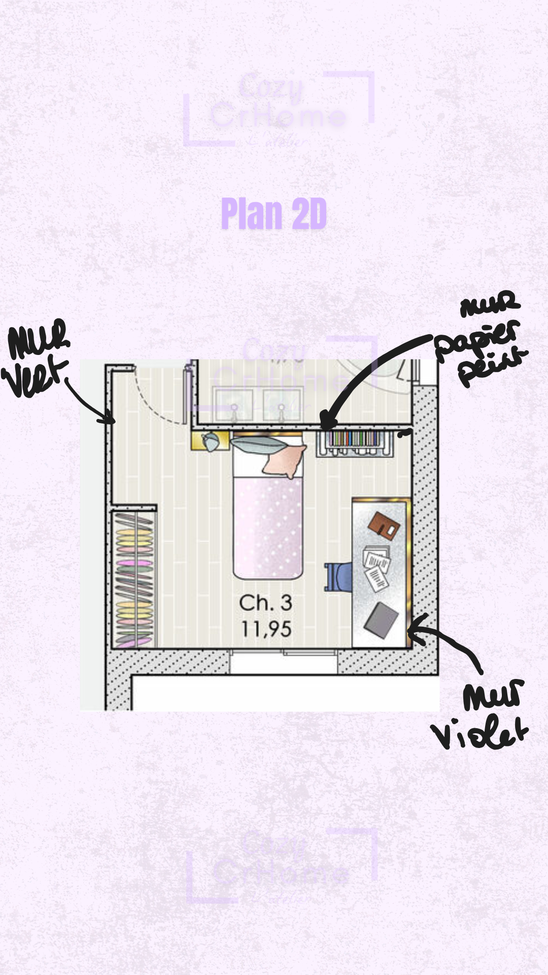 C'est simple ! Vous me décrivez le thème dont votre enfant rêve, les dimensions de sa chambre. Je crée ensuite un dossier complet avec moodboard, palette couleurs et plan 2D annoté. Vous recevez tout en digital, prêt à être utilisé