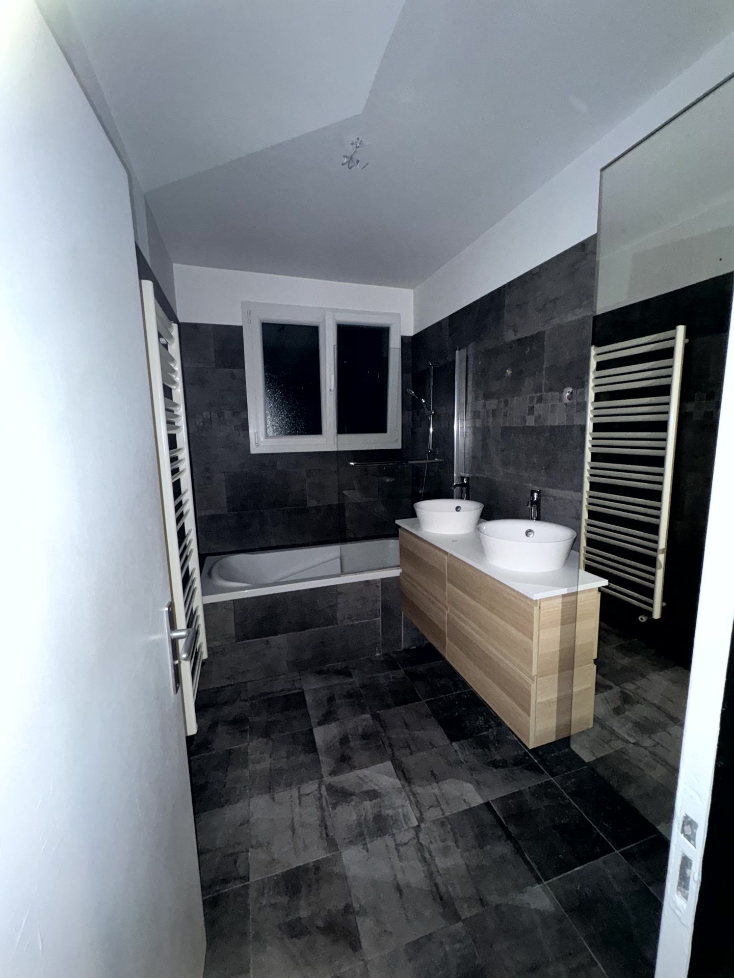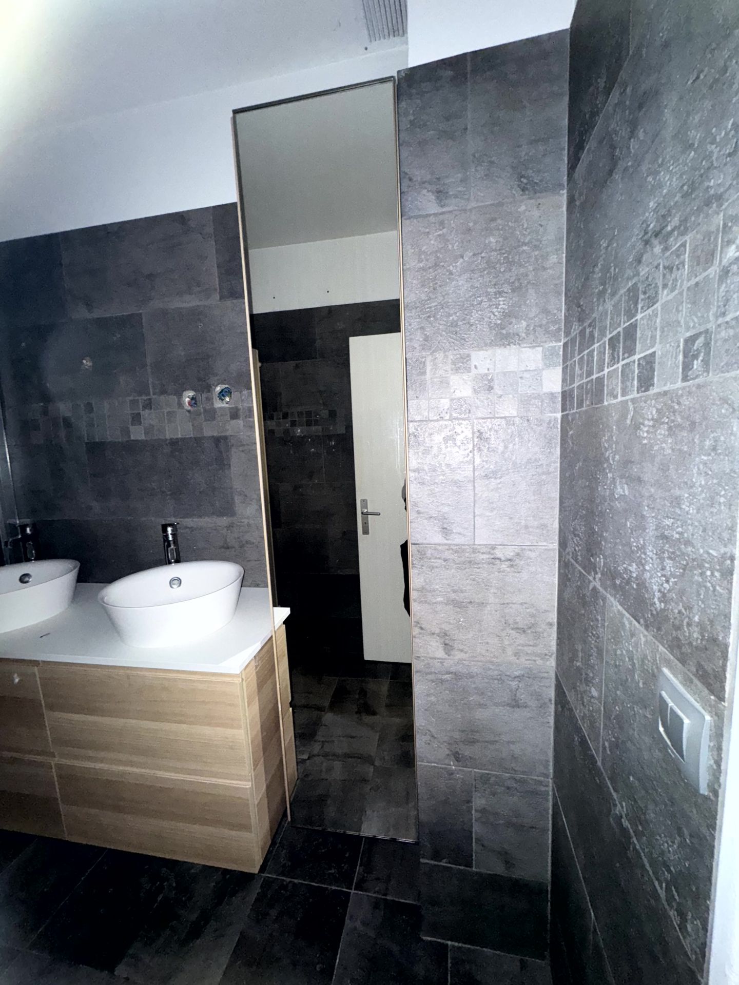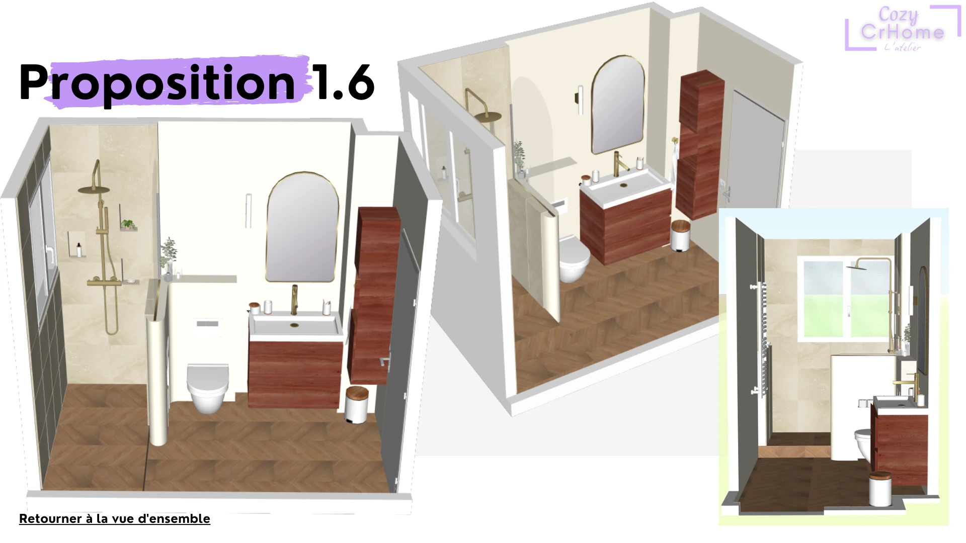 L’objectif était aussi de conserver une grande douche type hôtel de luxe, tout en créant une ambiance chaleureuse, authentique et minimaliste.