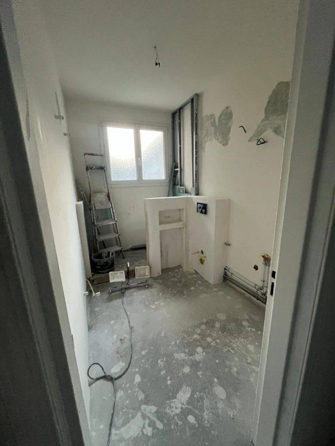 L’aménagement a été repensé intégralement afin d’optimiser l’espace, intégrer un toilette et offrir une circulation fluide. La nouvelle organisation redonne du souffle à la pièce tout en facilitant l’usage quotidien.